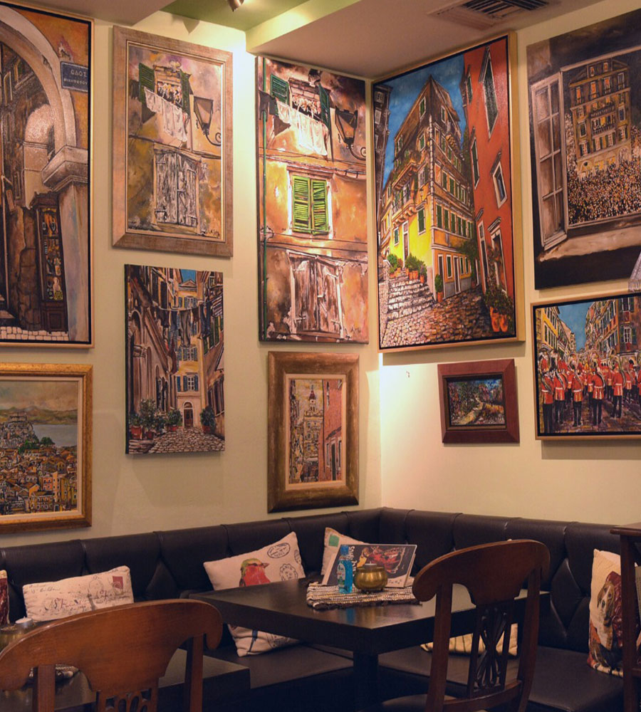 Paintings by Corfu artists, tasteful corners, aromatic coffee and snacks are there for you, along with delicious dishes to satisfy your taste and artistic desire. Upstairs you will find another special space for your company and for you who love to remotely work from the computer in a place that will surely inspire you. We suggest you try one of his lunch time dishes, which are famous for their simplicity and deliciousness.